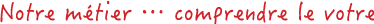 Nous avons toujours pour objectif de comprendre le métier de nos partenaires et de leurs offrir un service sur mesure et la pleine satisfaction.